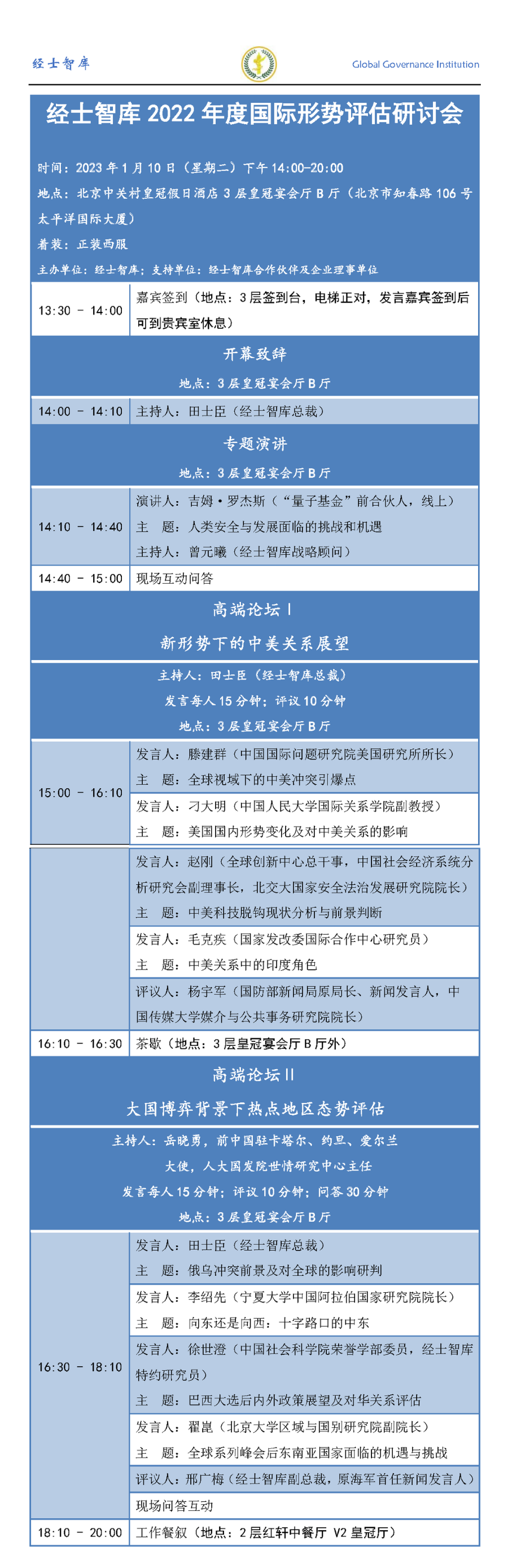 附:经士智库2022年国际形势评估研讨会会议议程
